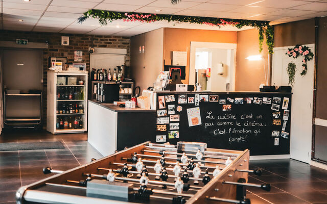 APPELER +330610361209Situé en plein coeur des Weppes, dans le petit village flamand de Le Maisnil, notre restaurant vous propose de vous régaler en famille ou entre amis tout en vous amusant avec nos nombreux jeux mis gracieusement à votre disposition ( baby foot, jeux de l'équilibre en bois, puissance 4 version XXl,...). Les Chefs vous servent directement au Bar/Cuisine car chez nous il n'y a pas de service à table mais nous vous offrons un moment agréable à prix doux !